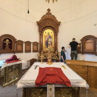 Новости Назад к новостям 706.2025 Установка новых киотов в алтаре. Божией Милостию радеющие о храме люди помогли нам сделать такую красоту в алтаре! Спаси их Господи! С Божией помощью эти киоты дополнятся писаными иконами двунадесятых праздников.