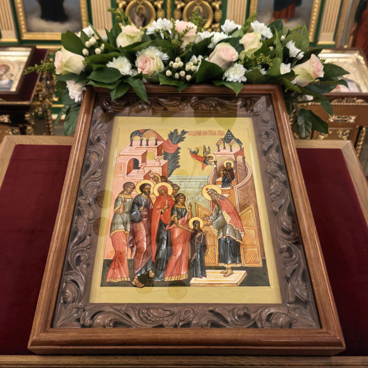 К празднику Введения во храм Пресвятой Богородицы была написана третья икона из ряда двунадесятых в честь этого события!Трудами иконописицы Анны и благотворительной помощи в нашем храме появляется артель икон двунадесятых праздников, размещенных в алтаре!