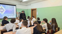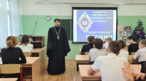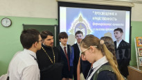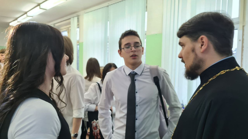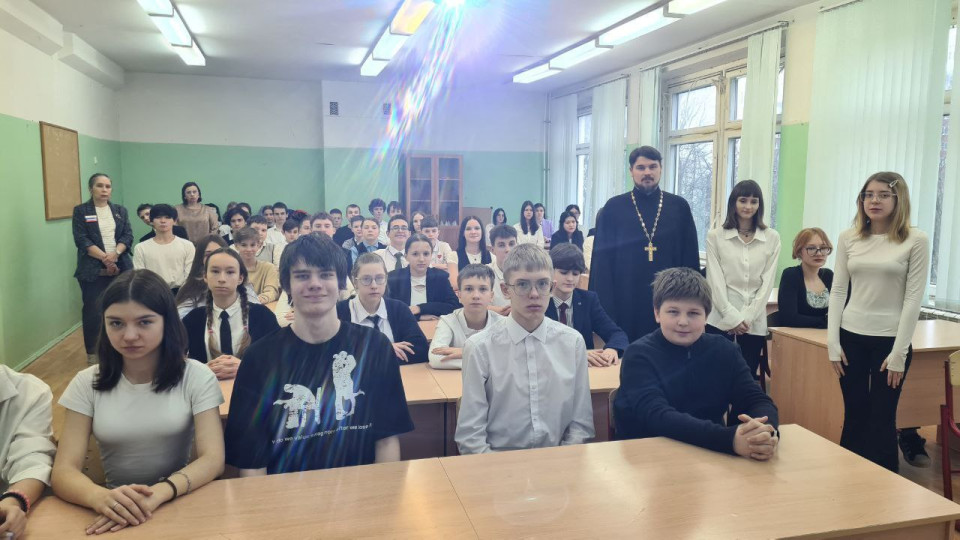 Ключевым событием стала встреча учащихся 9-х и 7-х классов с настоятелем храма преподобного Саввы Сторожевского священником Петром Тюхалкиным.