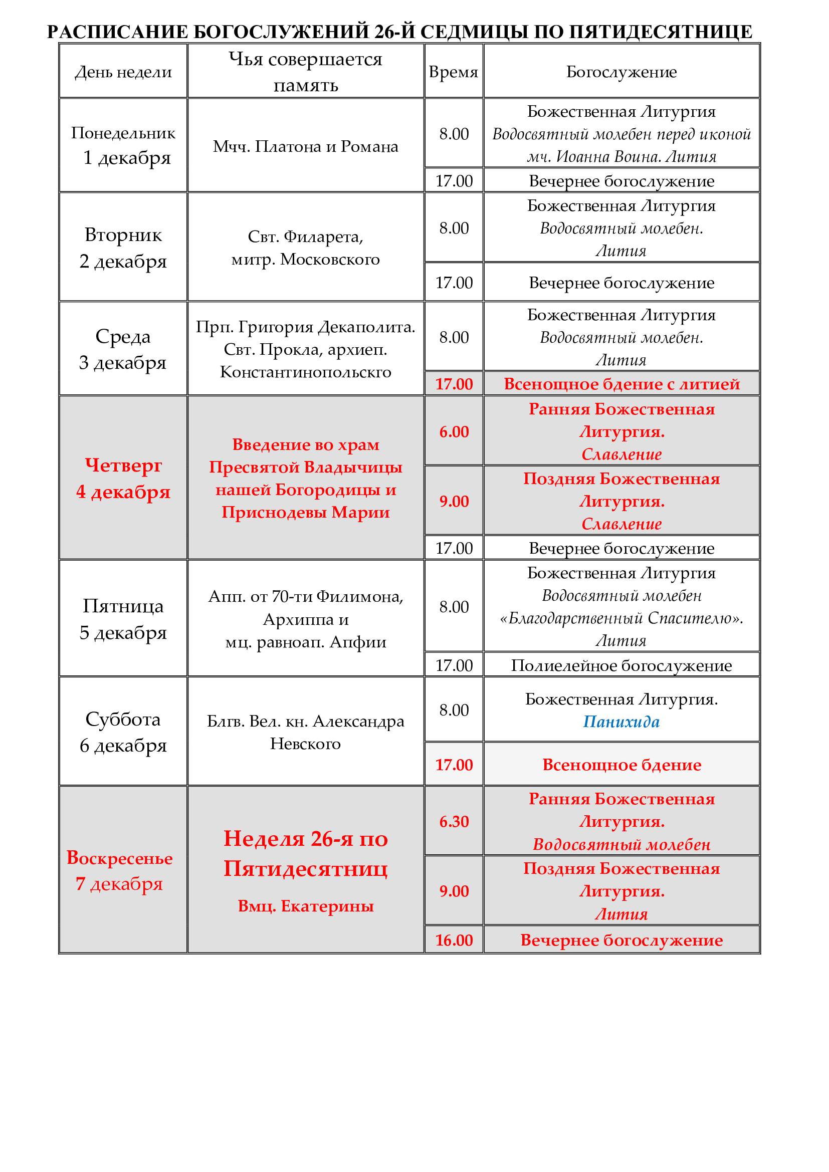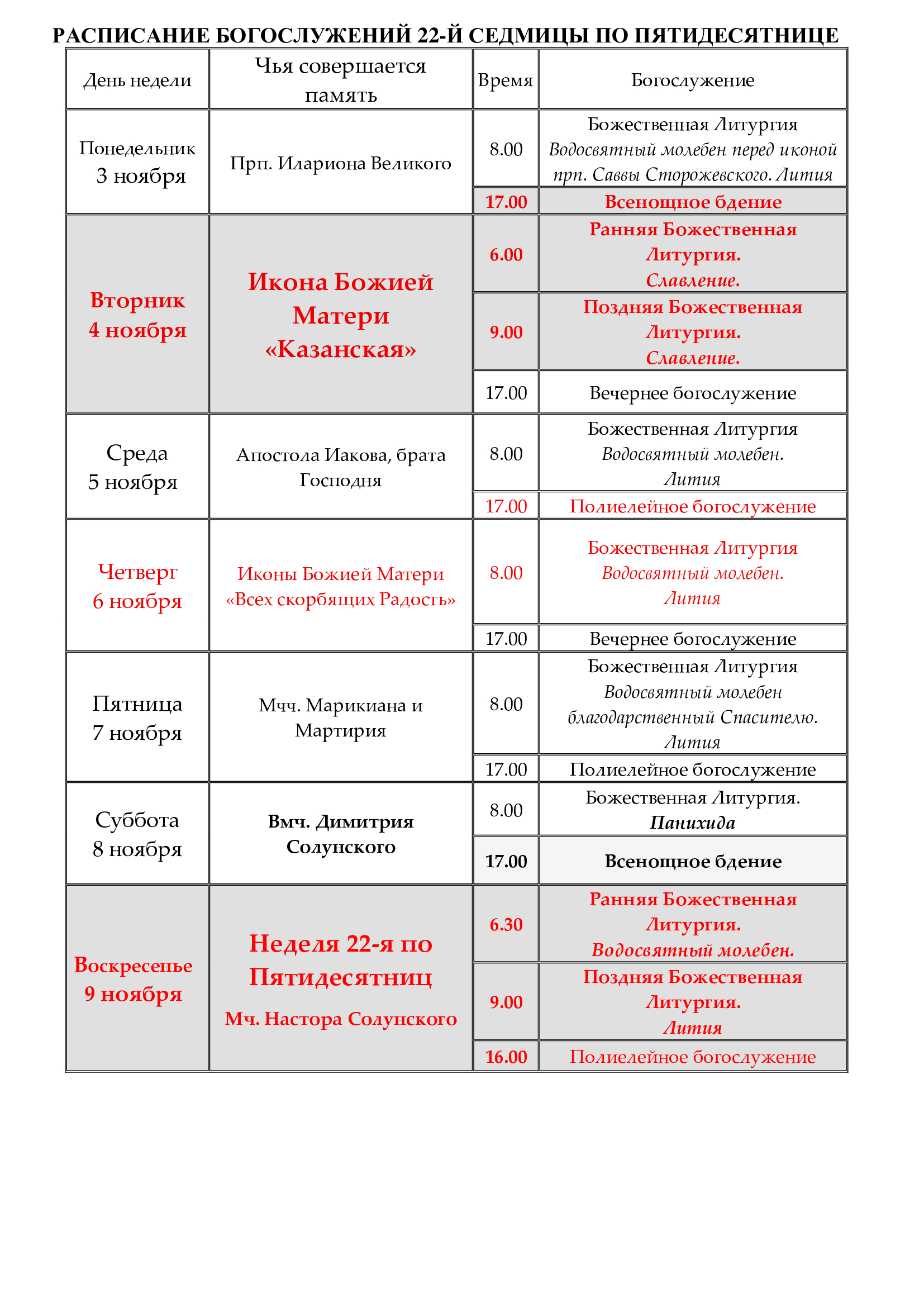По воскресным и праздничным дням совершаются две Божественные Литургии, следите за расписанием.